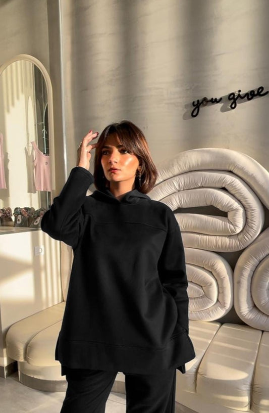 Basic Fleece Hoodie In Black